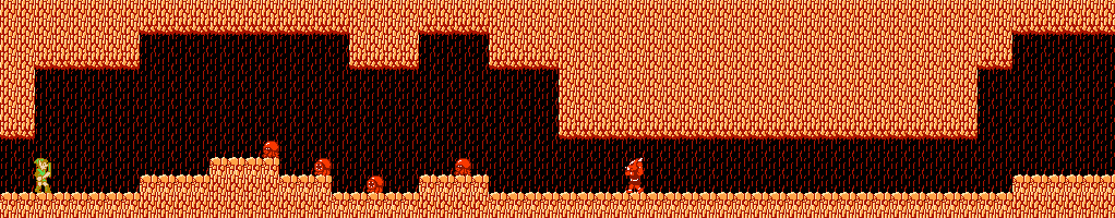 Sautez par-dessus les trous de lave et tuez les octorocks. Faites attention à ce que les rochers qu'ils vous envoient ne vous fassent pas tomber. Cette grotte est l'illustration parfaite de l'indispensabilité de la bougie. |