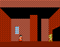 | Ha ! Voici le fameux goriya voleur. Celui-là est rouge. Il a exactement les mêmes attaques que les goriyas oranges, mais il est plus résistant. Il ne devrait pas vous poser de problèmes ceci dit. Faites surtout attention aux boomerangs qui vous passent au-dessus et qui reviennent. |