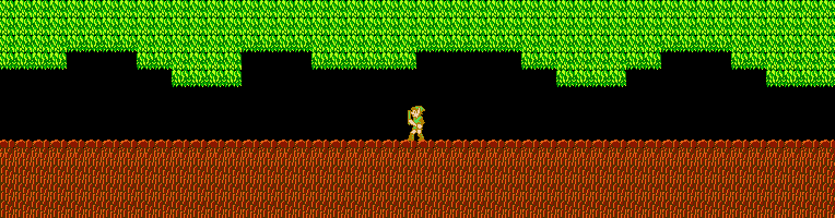 | Ne partez pas à droite ce coup-ci, cela ne sert à rien. Du coup, partez à gauche. Vous allez rencontrer un nouvel ennemi : le sorcerer. Le sorcerer apparaît et disparaît un peu comme un wizzrobe. Contrairement à ce dernier, le sorcerer peut être tué avec l'épée (l'attaque vers le bas est même la technique la plus adaptée pour cet ennemi). Il lance des flammes qui avancent sur le sol et qui ne peuvent être arrêtées avec le bouclier. |
